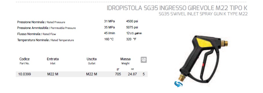 RUČICA PIŠTOLJA 310 bara M22X1,5 na M22X1,5 OKRETNA